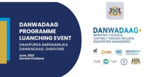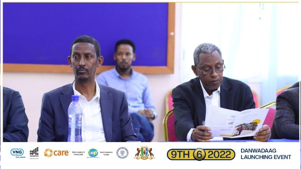 Garowe: 9 June 2022: Waxaa maanta Magalada Garowe lagu daahfuray Mashruuca DANWADAAG ay maalgalinayso Safaarada Netherlands ayna ku midaysan yihiin Hay’addaha kala ah Ururka Dowladaha Hoose ee Netherland (VNG International), Care Netherlands, Free Press unlimited iyo mediaINK, Ujeedka ugu muhiimsan ee mashruucan waa in kor loo qaado awoodaha looga hortagayo khataraha ka dhasha musiibooyinka iyo waliba in degmooyinku awood u yeeshaan in ay qayb wayn ka qaataan yaraynta khatarahaas.